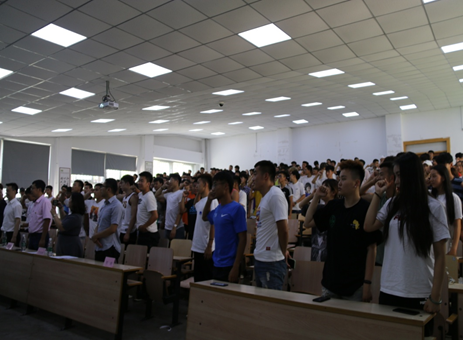 最后,由院学生会主席焦扬同学带领全体学生进行诚信考试宣誓,共同承诺:自觉遵守考试纪律,公平参与考试竞争,用认真努力积极迎考,用自觉自律维护考场纪律……在同学们庄严的宣誓下,会议落下帷幕。