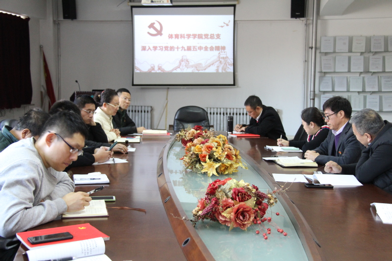 周莹院长结合《关于全面加强和改进新时代学校体育工作的意见》的文件精神和学院实际工作,谈了自己对全会精神的体会和认识,并对学院未来发展规划提出了工作思路和建议。