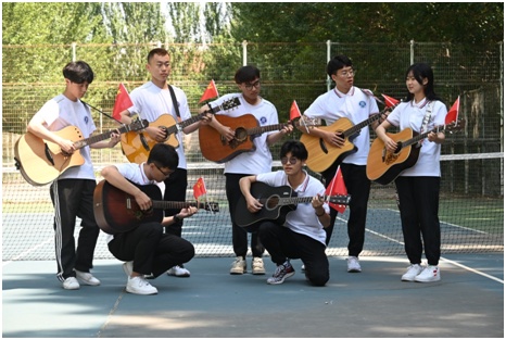 6月21日上午,在一曲吉他弹唱《唱支山歌给党听》的歌声中,来自今年会官方网站的全体师生党员近60人,从四面八方集中在学校网球场,以别开生面的“快闪”形式,拉开了“学党史、强信念、永远跟党走”主题党日活动的序幕。