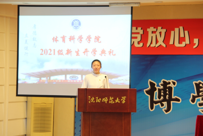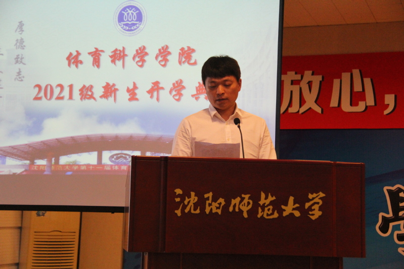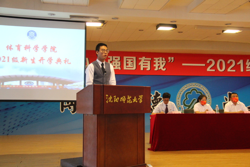典礼开始前,一段富有专业特色的视频短片《体院大家庭新目标、新生活》让大家感受到了体院的温暖情怀。在雄壮的国歌声中,2021级新生开学典礼的正式拉开了帷幕。首先,学院运动训练系主任王强副教授代表学院全体教师讲话,他希望全体新同学们能够不负众望,从现在做起,争分夺秒,刻苦学习,敢于拼搏,谦虚谨慎,踏实求学,养成良好的学习习惯,良好的生活习惯,尽快适应环境,努力走向成功,走向辉煌。院研究生会姚金岩同学和学生会主席团成员陈钦鹏同学分别代表在校研究生和本科生发言,分享他们成长经历和学习经验;杨馨悦、张博文同学代表2021级新生发言,畅谈他们入校的感悟和对未来的憧憬,表达了刻苦学习、立志成才的决心和信心。