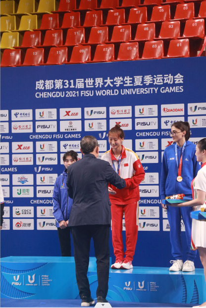 热烈祝贺今年会官方网站运动训练专业谢学婷(21162025)获得第31届世界大学生夏季运动会跆拳道女子-46公斤级季军