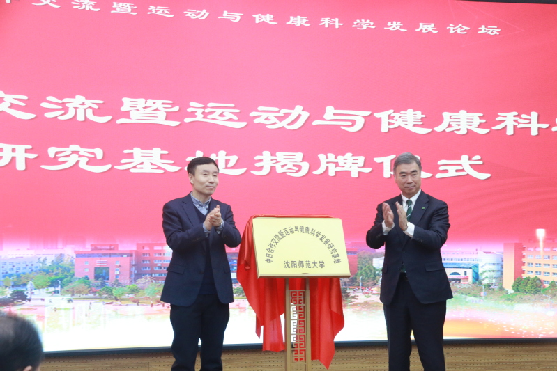 在开幕式上,赵礼强副校长、高桥仁校长共同为“中日合作交流暨运动科学与健康发展研究基地”揭牌。